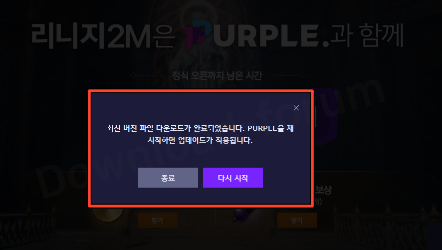 ▲ 퍼플 앱플레이어가 최신 버전이 아닌 분들은 리니지2m PC버전 설치 시 진행이 되지 않을 수도 있습니다. 따라서 엔씨 소프트의 퍼플 앱플레이어를 최신 버전으로 다운로드해야 합니다.