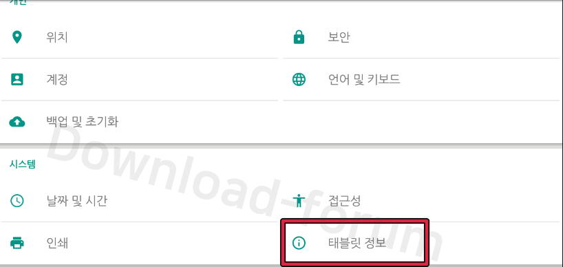 ▲ 태블릿 정보에서 [시스템 업데이트] 항목을 찾으셔서 클릭 해주세요.
