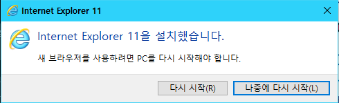 ▲ Internet Explorer 11 설치가 완료되면 컴퓨터를 재부팅 후 새롭게 적용된 버전의 인터넷 익스플로러 11을 사용할 수 있습니다.