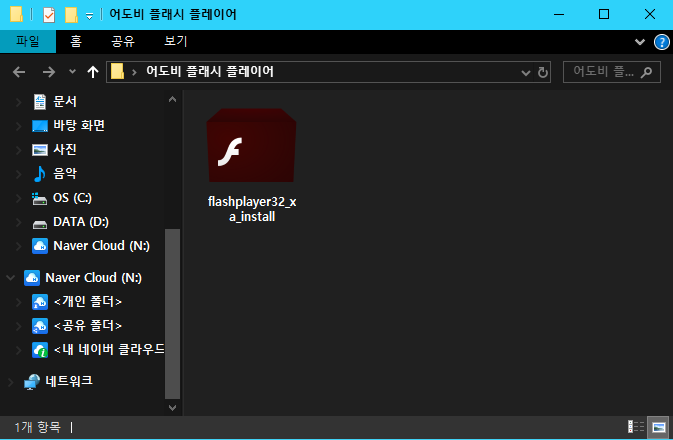 ▲ 어도비 플래시 플레이어 설치 파일 다운로드 완료되면 클릭하여 설치를 진행합니다.