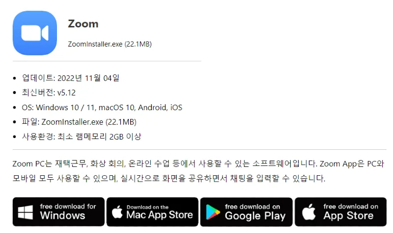 | 참고 페이지 | Zoom PC 다운로드 관련 페이지 |