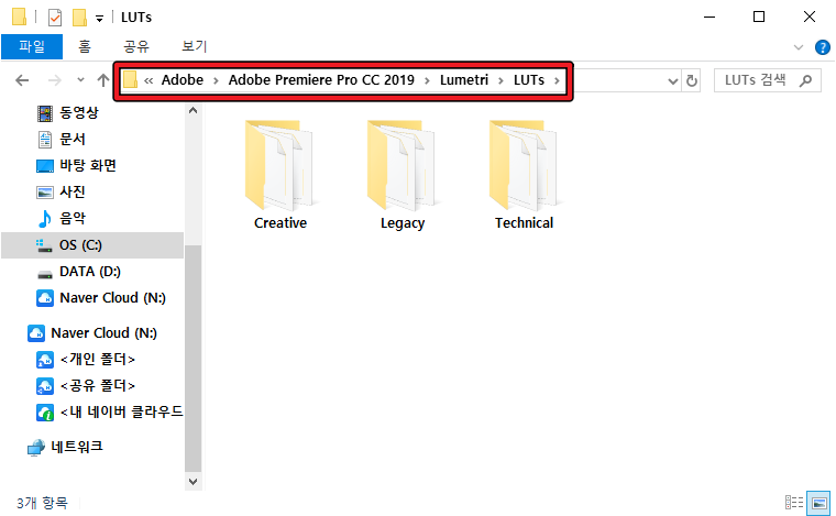 LUT 파일 옮기기