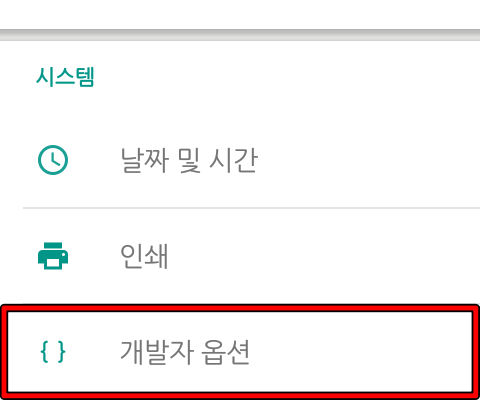 ▲ 이렇게 새롭게 확인할 수 있는 메뉴인 개발자 옵션을 클릭합니다.