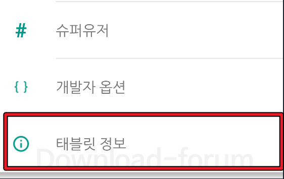 2. 설정 메뉴 중 태블릿 정보로 이동