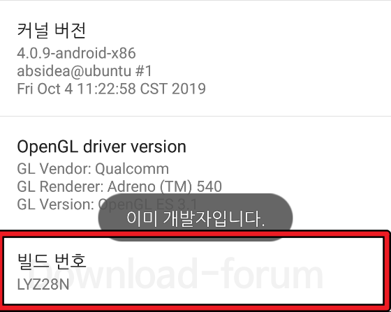 3. 빌드번호 10회 클릭