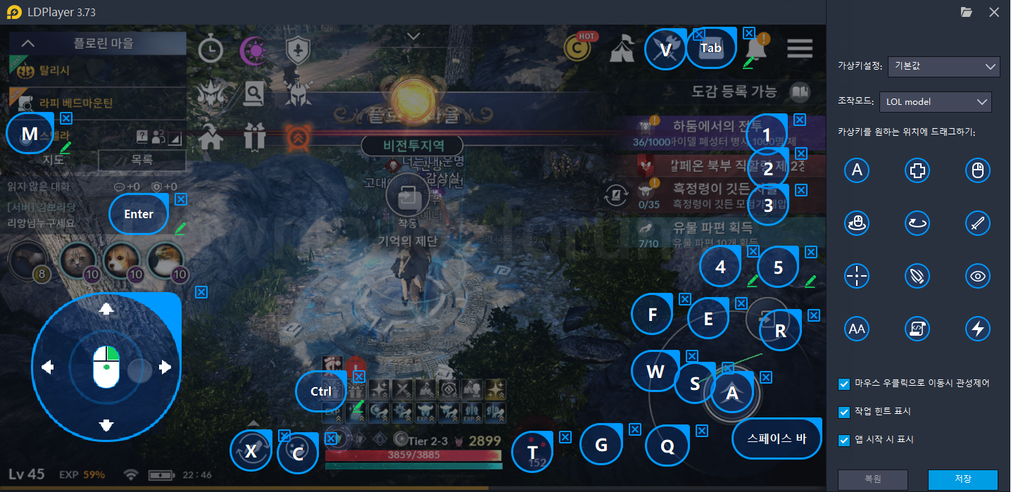 LD플레이어에서 사용할 수 있는 가상키란 컴퓨터로 모바일 게임을 플레이할 때 특정 버튼들을 PC의 단축키로 대체하는 기능입니다.