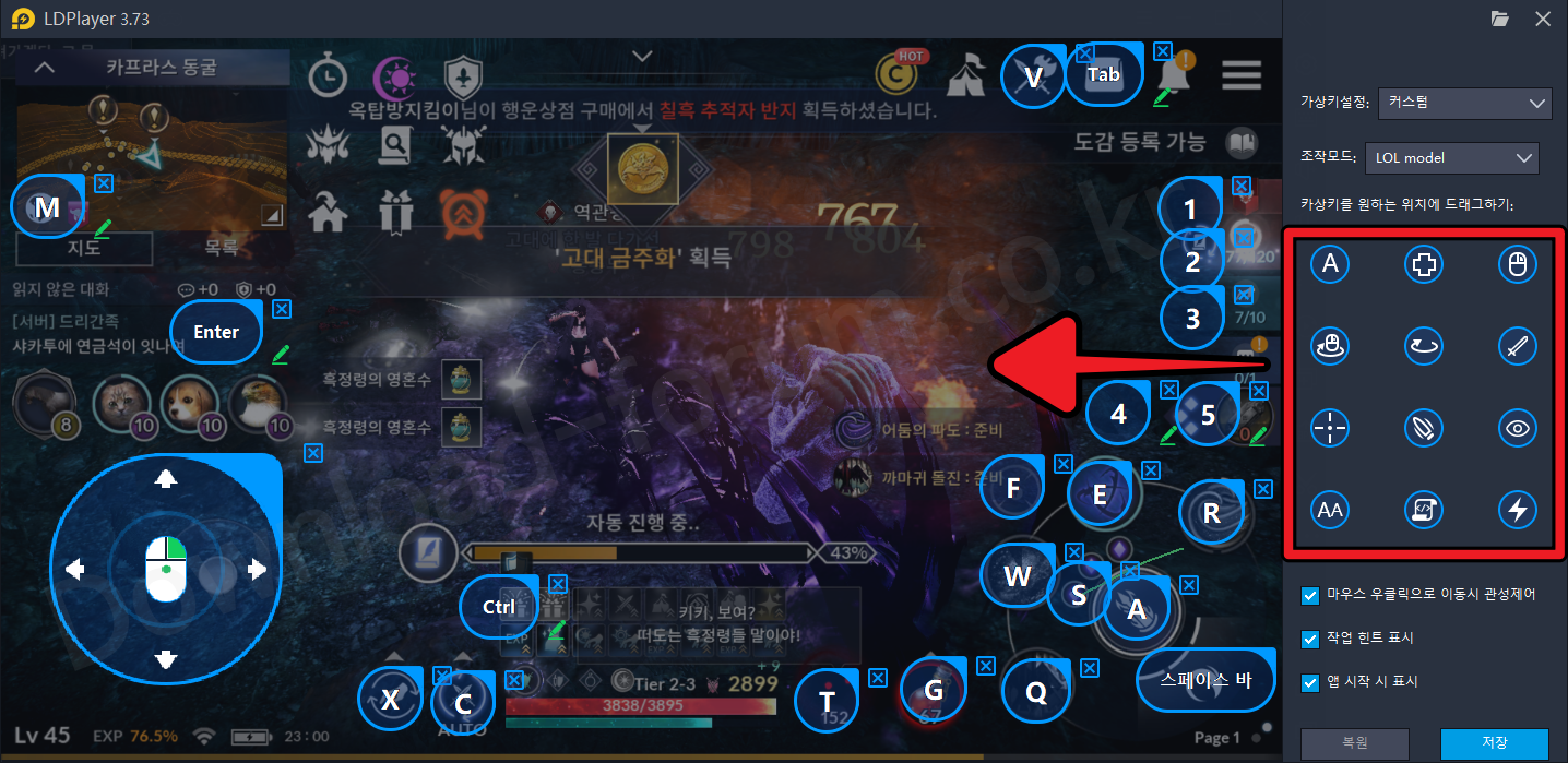 이렇게 가상키를 사용할 경우 일반 컴퓨터로 모바일 게임을 즐길때 일반적인 PC 게임을 플레이하는 것과 같이 단축키로 간단하고 빠르게 진행할 수 있다는 것이 장점입니다.