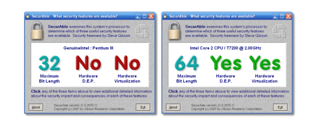 공유드린 링크에서 SecurAble이라는 프로그램을 받으면 내 pc에서 vt 활성화 설정을 할 수 있는 여부에 대해 확인할 수 있습니다.