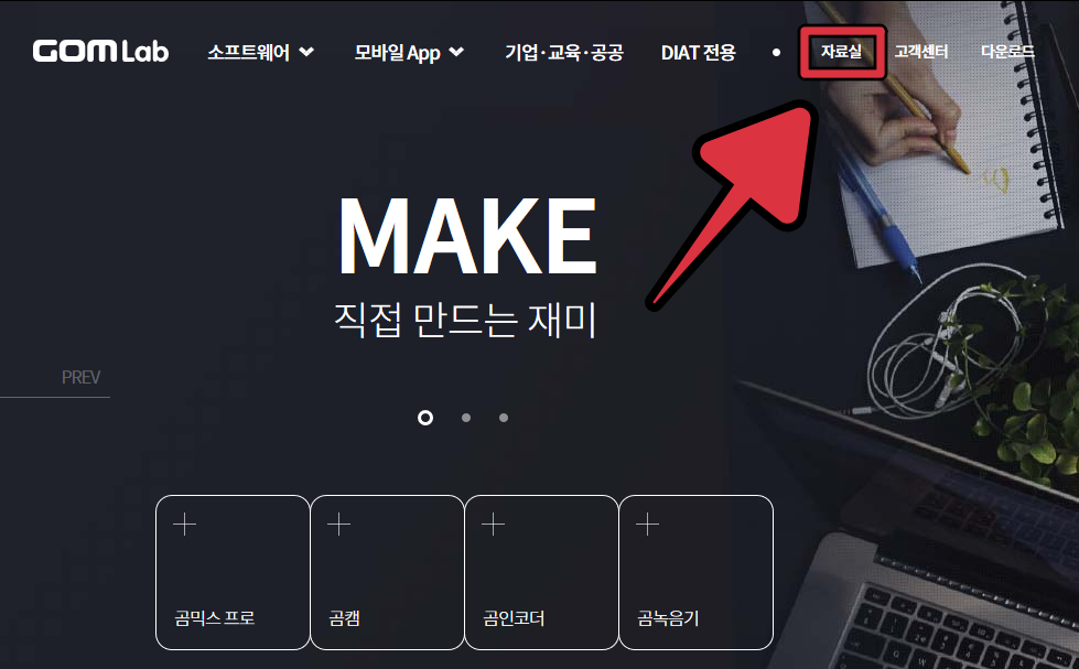 공유드린 링크를 통해 곰플레이어 공식 홈페이지에 방문하면 상단에서 자료실을 확인할 수 있습니다.