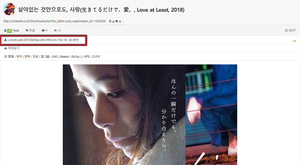 ▲ 다운로드하려고 하는 자막을 검색 후에 상단에 위치한 차막 파일 이름을 클릭하여 다운로드를 진행할 수 있습니다~