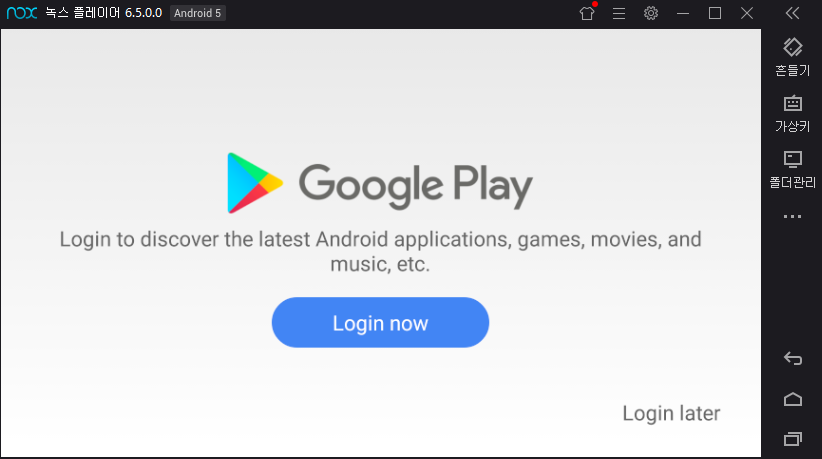 녹스 앱플레이어 다운로드 후 가장 먼저 해야 할 것은 구글 로그인 계정입니다. 구글 계정 로그인을 진행해야 안드로이드 에뮬레이터인 녹스에서 앱을 다운로드하여 사용할 수 있습니다.