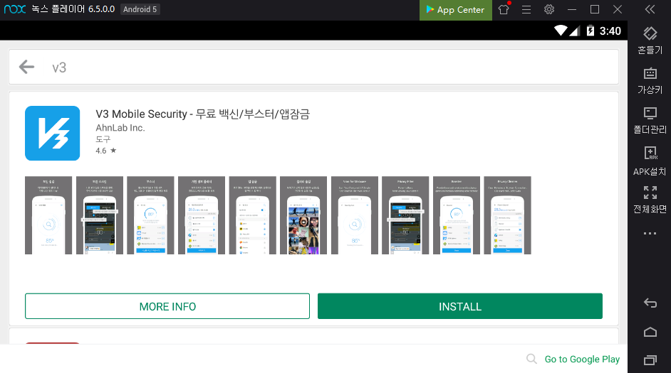 두 번째로 앱 플레이어 프로그램 특성상 강제로 채굴 어플이 몰래 설치된다거나 pc에 악영향을 끼칠 수 있기 때문에 백신 어플을 먼저 설치합니다. 보안 관련 내용은 추후에 자세히 다루도록 할게요.