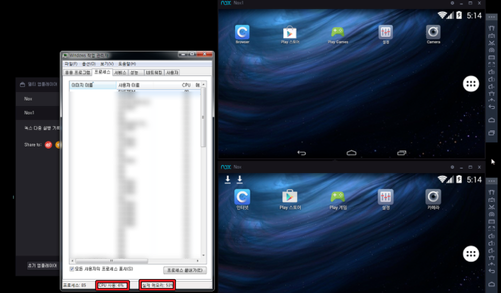 녹스 앱플레이어를 멀티로 사용 시 CPU와 메모리 사용량이 대폭 증가하시는 것은 알고 계시죠??