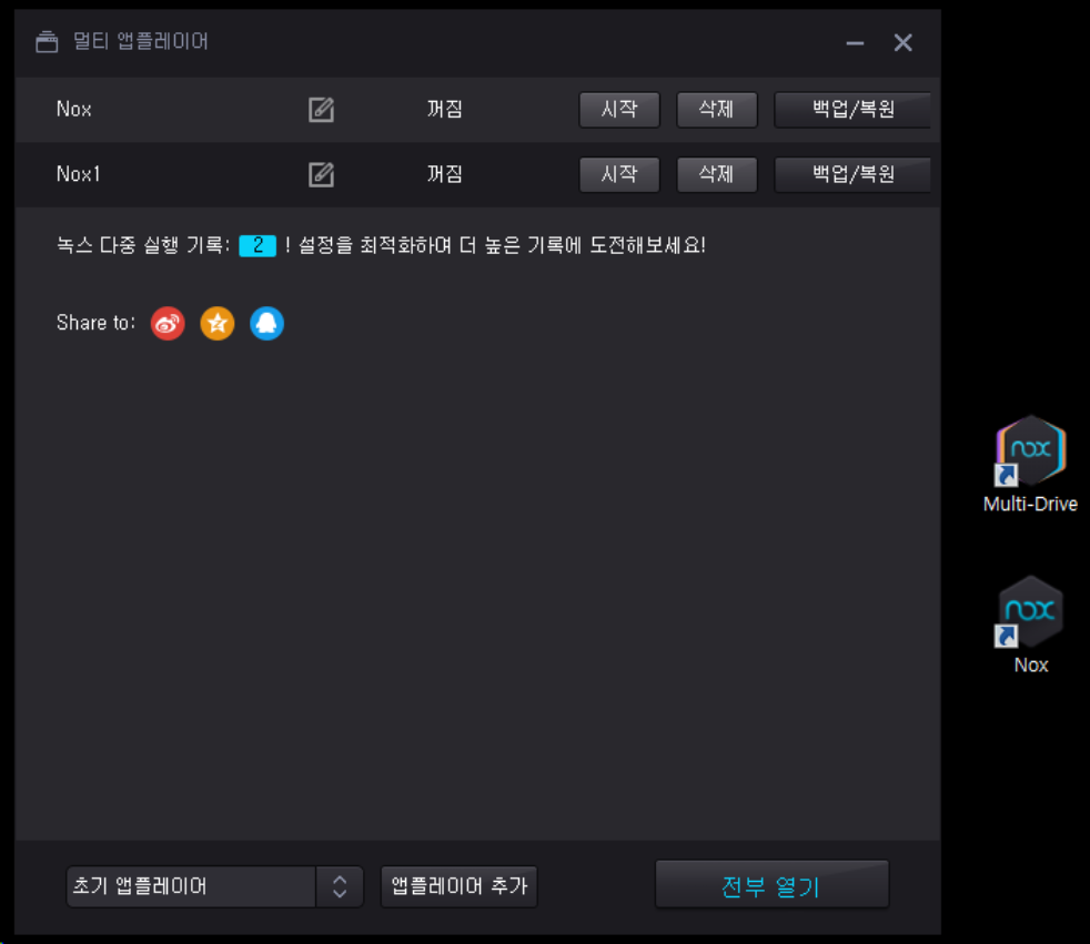 - 먼저 녹스 앱플레이어 다운로드 시 같이 설치되는 녹스 멀티 드라이브를 실행합니다.