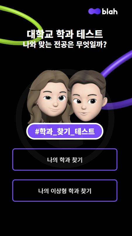 이번 학과 찾기 테스트에서는 나의 성격을 바탕으로 나에게 잘 어울리는 대학교 전공 및 학과를 테스트해볼 수 있고, 내가 좋아하는 이성의 특성을 바탕으로 나의 이상형이 있을법한 대학교 학과를 테스트 결과로 제공합니다.