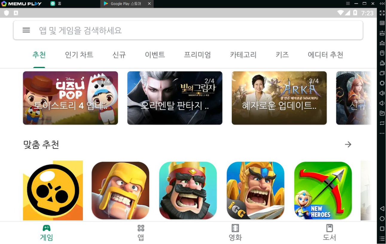 일반 모바일 스마트폰이나 태블릿 PC를 사용하는 것과 같이 구글 플레이 스토어에 접속하여 필요한 어플이나 모바일 게임 등을 다운로드하여 미뮤 앱 플레이어에서 실행할 수 있습니다.