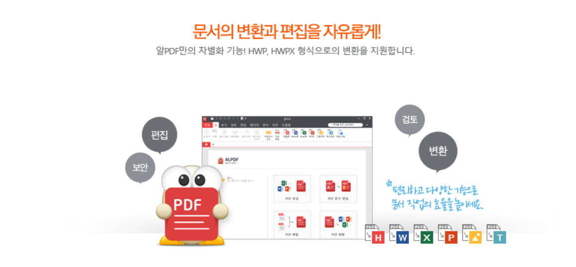 알PDF란 이스트소프트의 알툴즈에 포함된 프로그램으로 PDF 뷰어이자 PDF 편집 프로그램입니다. 알PDF를 다운로드하여 PDF 파일을 이미지 파일로 변환하거나, PDF 파일을 엑셀, 한글, PPT, AI 등등 다양한 편집 프로그램의 포맷으로 변환할 수 있습니다.