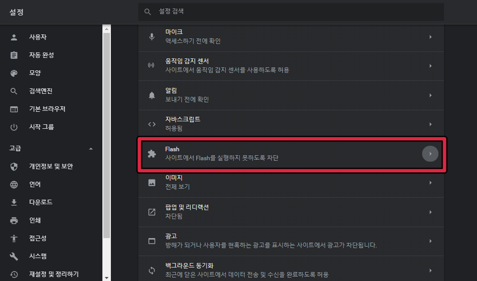 구글 크롬 어도비 플래시 플레이어 실행 및 활성화