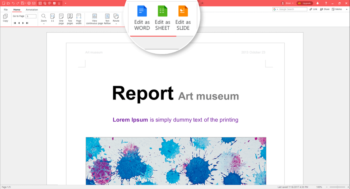 - PDF 문서를 JPG로 변환하거나 PDF 파일을 엑셀 파일로 변환하고, 반대로 JPG를 PDF 파일 등으로 변활 할 수 있습니다. 다양한 오피스 프로그램의 포맷으로 변환이 용이합니다.
