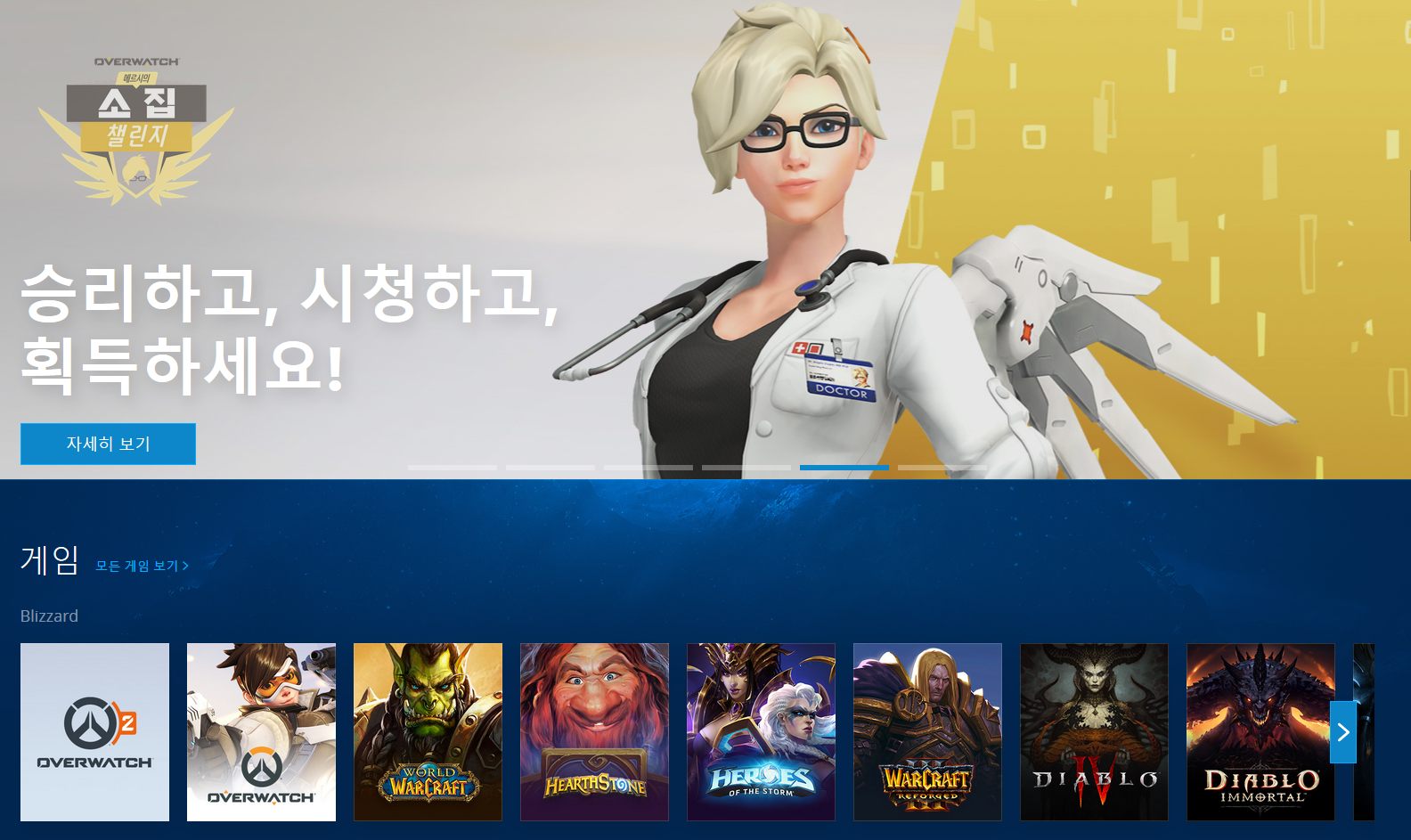 오버워치 다운로드를 하기 위해 먼저 공유드린 링크를 통해 블리자드 공식 사이트로 접속합니다. 여기서 블리자드의 신규 게임 및 기존에 있던 디아블로3, 워크래프트, 히어로즈 오브 스톰, 오버워치 등을 모두 다운로드할 수 있습니다.