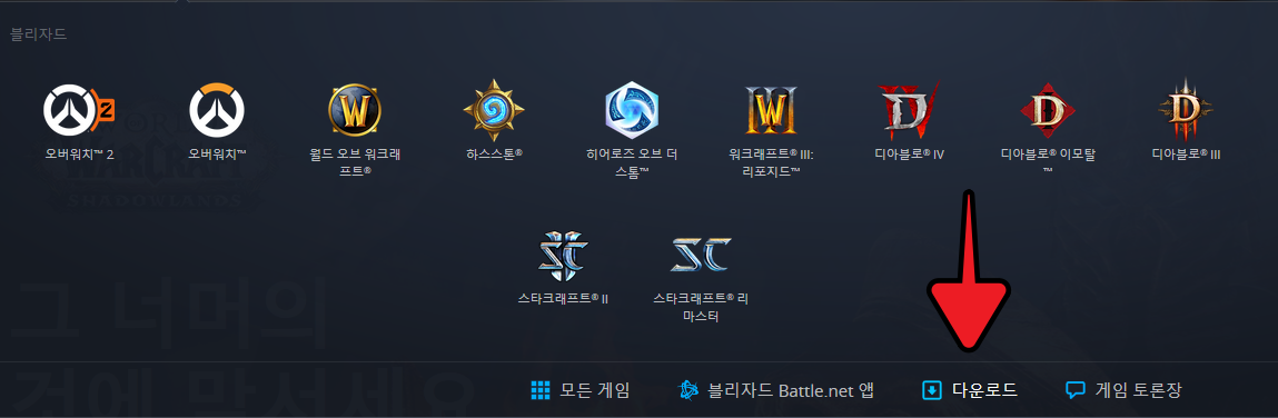 2. 블리자드 메뉴 내 다운로드 페이지 이동