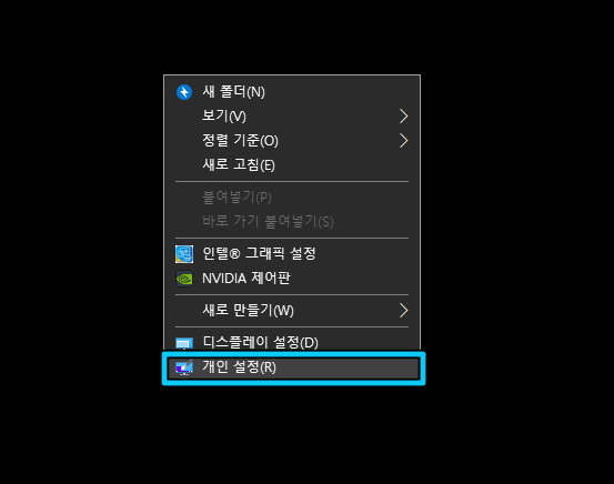 - 바탕화면 우 클릭 > 개인설정