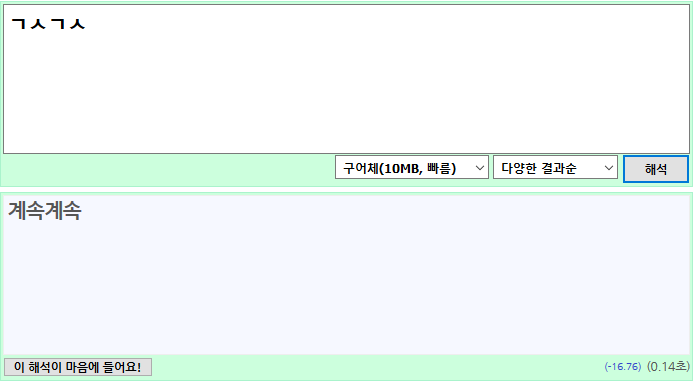 - 초성퀴즈, 자음퀴즈를 초성 해석기에 입력합니다.