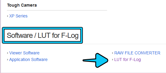다운로드 소프트웨어 및 펌웨어 메뉴에 들어가 하단으로 내려가면 위와같이 'LUT for F-log' 항목에 포함된 링크를 확인할 수 있습니다.