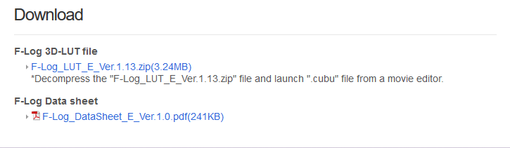 여기에서 F-log를 이터나로 변환해주는 lut을 다운로드할 수 있습니다. 파일 이름에 'E'라고 작성된 것의 의미가 이터나를 뜻하는데요. 왜 공식 홈페이지에서 아스티아, 프로비아, 벨비아 등의 변환 lut은 다운로드할 수 없는지 모르겠네요...