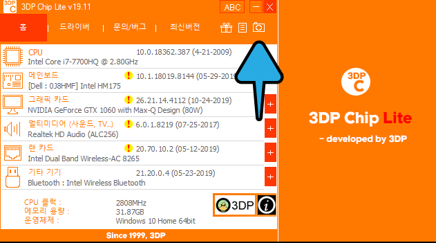 사용 중인 PC에 장착된 CPU, 그래픽 카드 드라이버, 사운드 카드 드라이버, 무선 마우스 드라이버, 모니터 드라이버, 프린터 드라이버 등등 적합한 장치의 드라이버를 다운로드하는 것이 생각보다 어렵다고 생각되는데요. 3DP Chip은 PC의 설치된 윈도우의 버전 및 하드웨어 사양, 모델 등을 분석하여 적합한 드라이버를 자동으로 잡아주는 프로그램입니다.