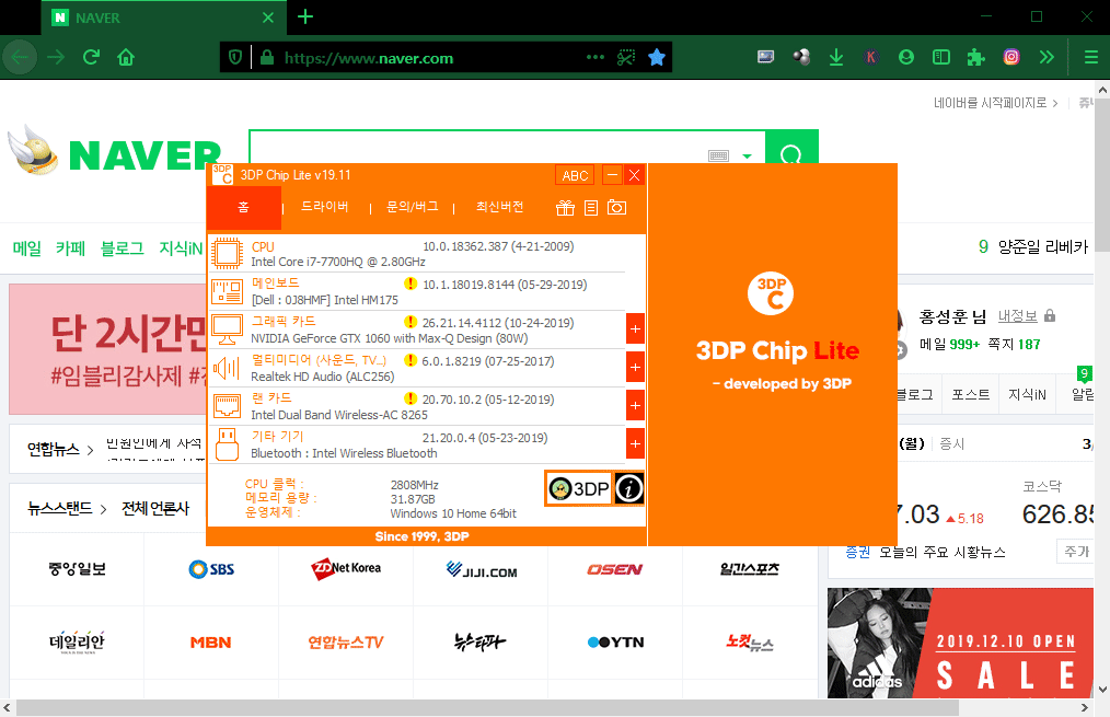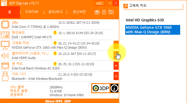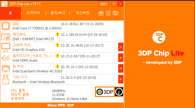3DP Chip 사용법 - 내 PC의 설치된 하드웨어 확인