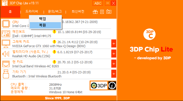 3DP Chip - 드라이버 백업 및 복원