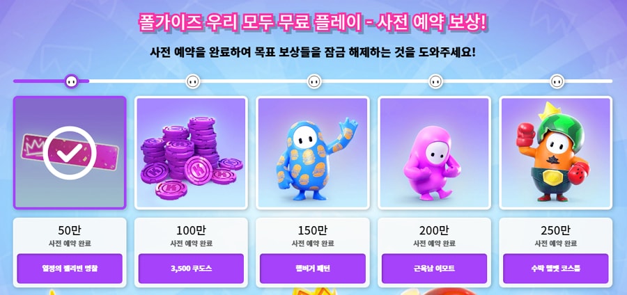 폴가이즈가 무료로 전환되며 현재 신규 유저들을 모집하며, 무료 전환까지 사전예약 이벤트를 진행중입니다. 모든 잠금 해제된 목표 보상은 예약 주문한 모든 플레이어에게 수여되며 잠금 해제된 보상은 2022년 6월 28일 오전 8시 59분(동부 표준시)까지 플레이어에게 제공됩니다!