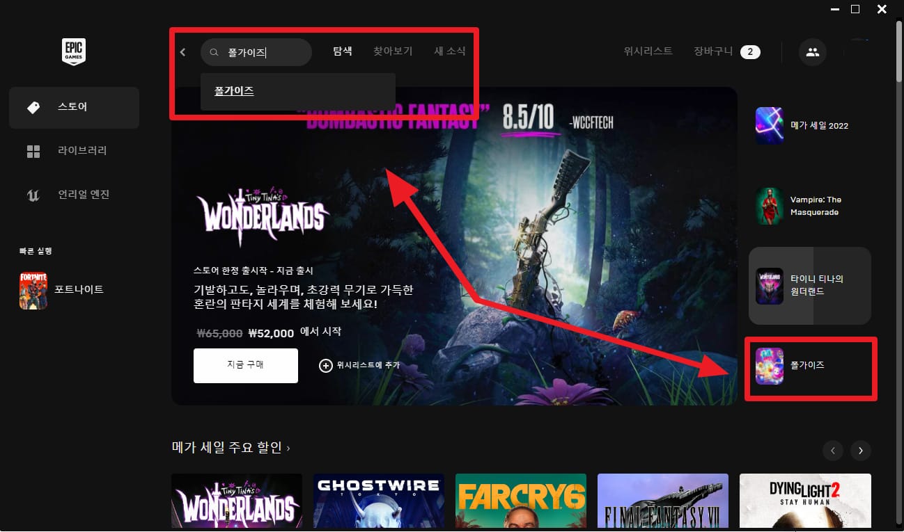 2. 스토어에서 폴가이즈 검색