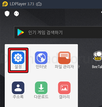 개발자옵션을 활성화하기 위해서 ld플레이어에 포함되어 있는 설정 메뉴로 이동합니다.