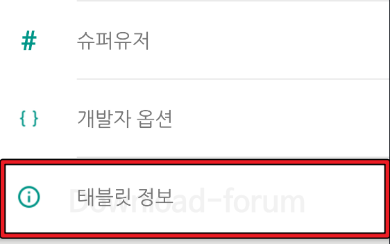 설정에서 하단으로 내리면 [태블릿 정보] 메뉴가 있습니다.