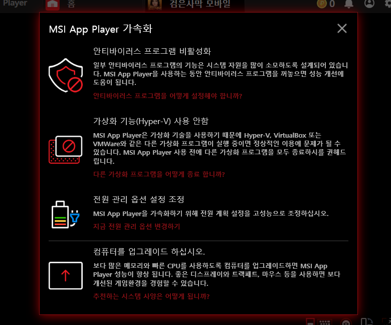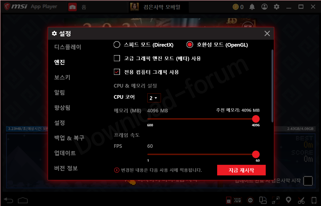 MSI앱플레이어 엔진 최적화