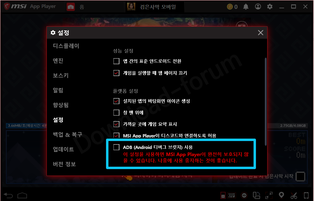 MSI앱플레이어 설정