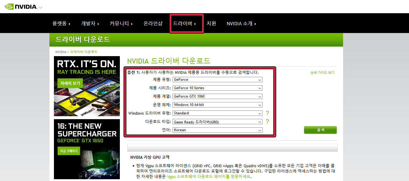 엔비디아 그래픽 카드 드라이버 다운로드
