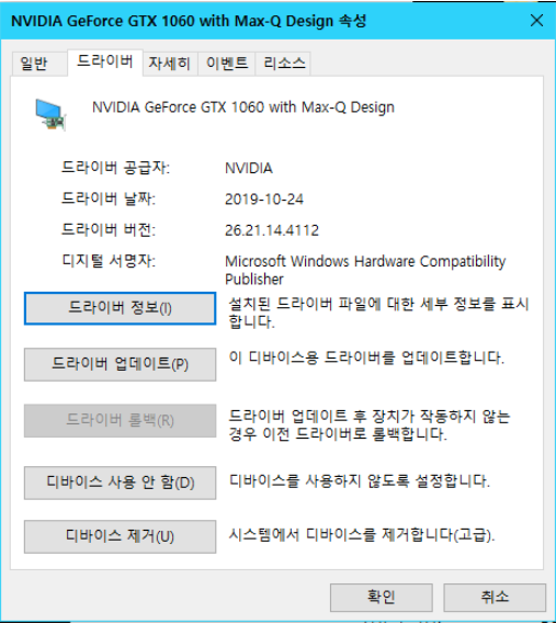 Window 드라이버 유형 GeForce GTX 1060