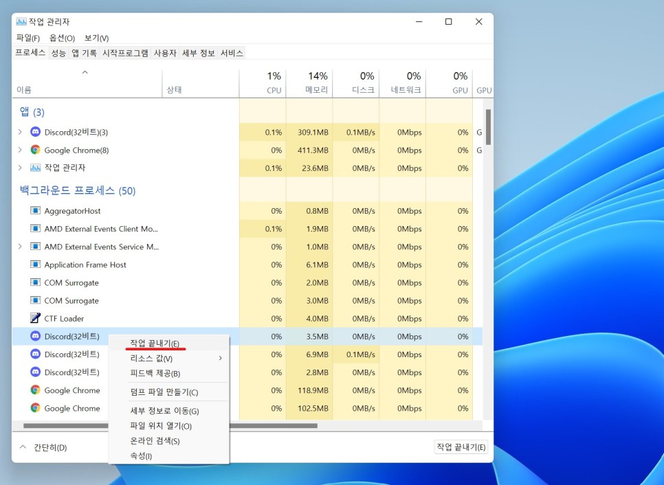 1. 백그라운드에서 디스코드 관련 프로세스 종료