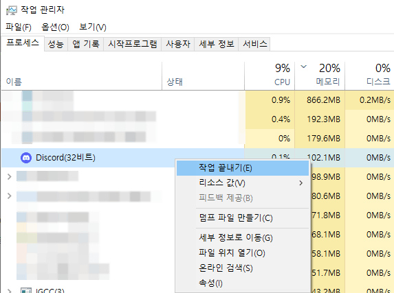 1.디스코드 관련 프로세스 종료