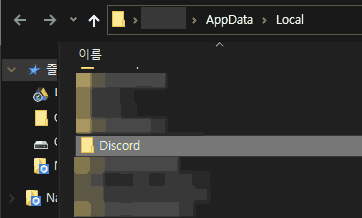 Local 폴더에 설치되어 있는 [Discord] 폴더를 완전히 삭제합니다.
