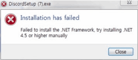 Installation has failed 관련 오류 창에서 위와 같이 .NET Framework 관련 가이드를 보면 PC 환경의 Net Framework 버전이 Discord에서 요구하는 버전보다 낮기 때문에 발생하는 오류입니다.