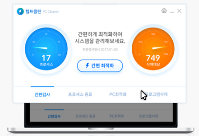 헬프클린은 컴퓨터 최적화 프로그램으로 PC를 사용하며 불필요하게 쌓인 임시파일이나 레지스트리 등을 제거하고, 인터넷 탐색 사용 기록이나 불필요하게 실행중인 프로그램을 종료하여 컴퓨터의 저장공간 및 메모리를 확보합니다.