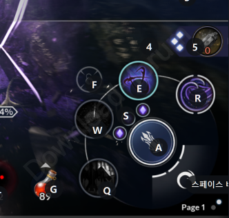 가상키 설정 하단에 [작업 힌트 표시] 체크 버튼을 클릭하면, 오른쪽 이미지와 같이 게임 플레이 중 바로 단축키를 확인할 수 있습니다. 반대로 단축키 표시가 마음에 들지 않으면 체크를 해제하시면 됩니다.