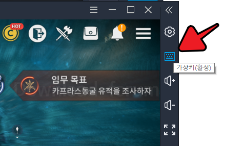 먼저 가상키를 사용하기 위해서는 ld플레이어 우측 도구모음에서 키보드 모양의 아이콘을 클릭해서 가상키 관련 설정을설정할 수 있습니다.