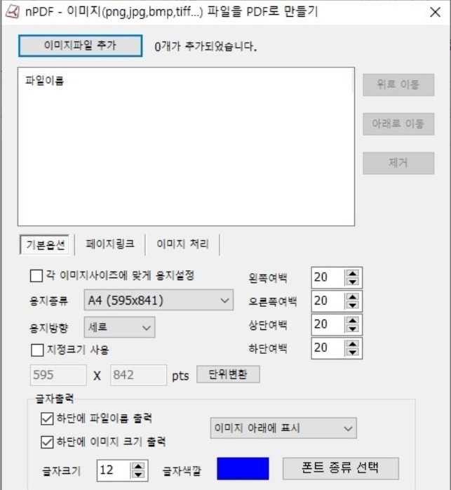 ▲ nPDF 다운로드 후 사용하고자 하는 기능을 클릭 후 [다음] 버튼을 클릭하면 해당 기능에 대해 상세하게 설정할 수 있습니다. 저는 JPG PDF 변환 기능을 사용하려고 하는데요.