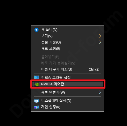 바탕화면에서 우클릭하면 NVIDIA 제어판 목록을 확인할 수 있습니다. 이 설정으로 들어가서 녹스 앱플레이어를 사용하여 V4 실행 시 그래픽 카드를 사용하도록 설정하시면 되는데요.