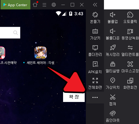 녹스에서 소리를 줄이거나, 게임 내 줌인, 줌아웃이 필요한 경우 우측 도구 모음 메뉴에서 3점 메뉴 버튼을 활용할 수 있습니다.
